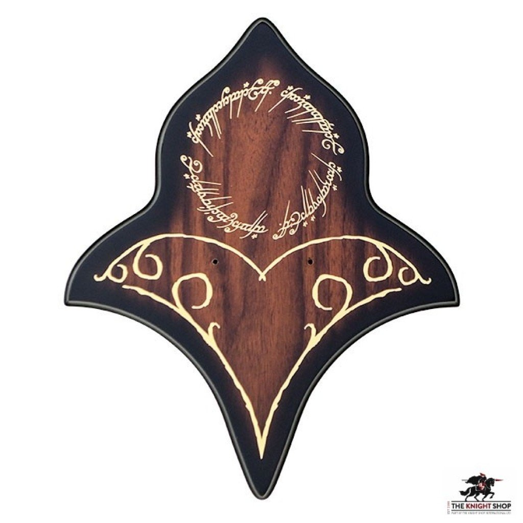 With over 100 million copies sold in over 40 languages, millions have grown up with The Lord of the Rings, the classic epic tale considered by millions to be the greatest fantasy-adventure story ever told. J.R.R. Tolkiens phenomenal epic trilogy chronicles the struggle between good and evil for possession of a magical ring. The book trilogy, named the most popular book of the 20th Century, has been presented in a series of feature films from New Line Cinema. Solid metal guard and pommel, antique metal finish. Plastic handle, Elven vine design on 420 stainless steel blade. Wood display plaque and certificate of authenticity.